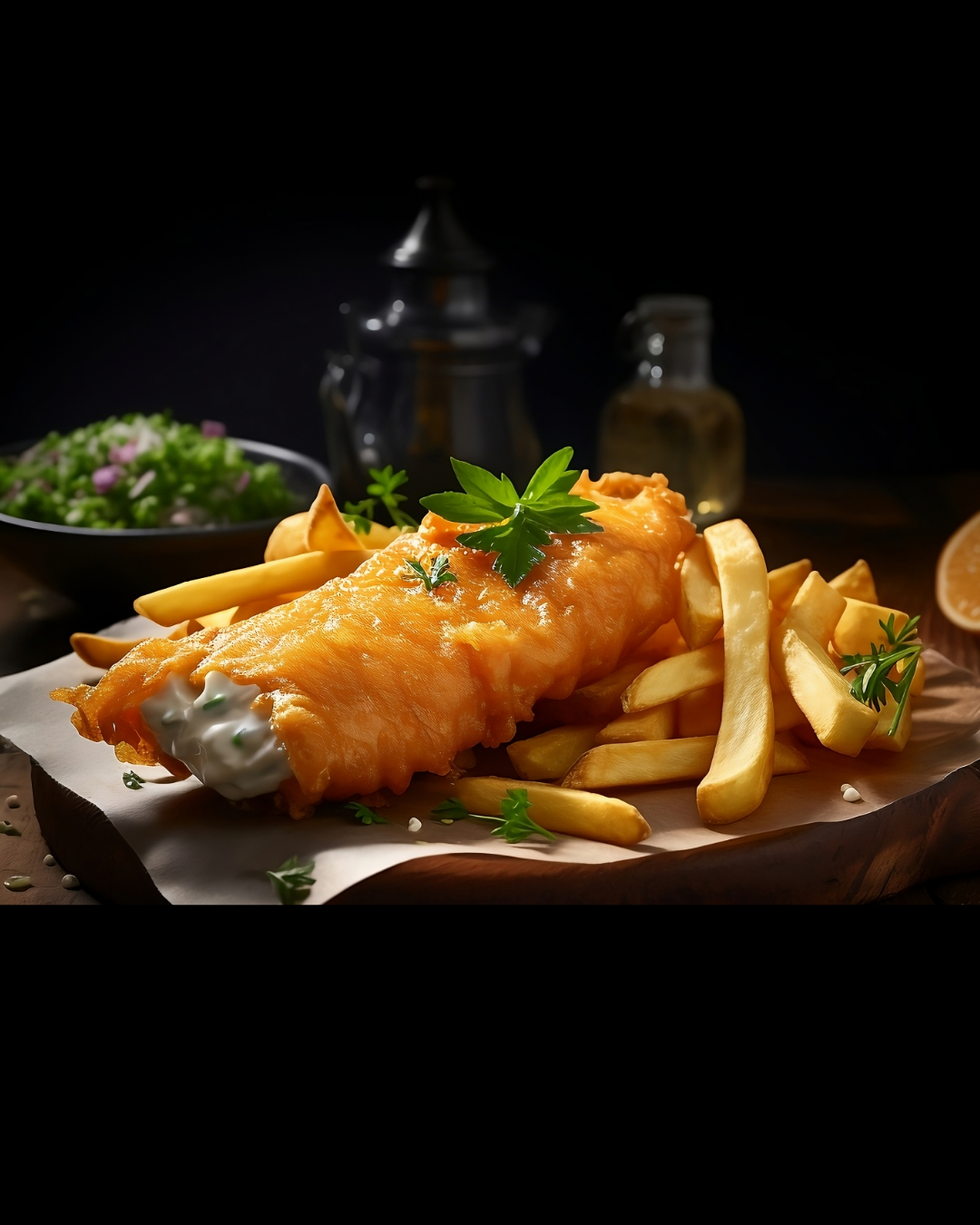 Menu Includes: Fried and baked beer-battered cod, French fries, Fried rice, Mac & cheese, Coleslaw, Desserts, Soft drinks, Beer, and Wine